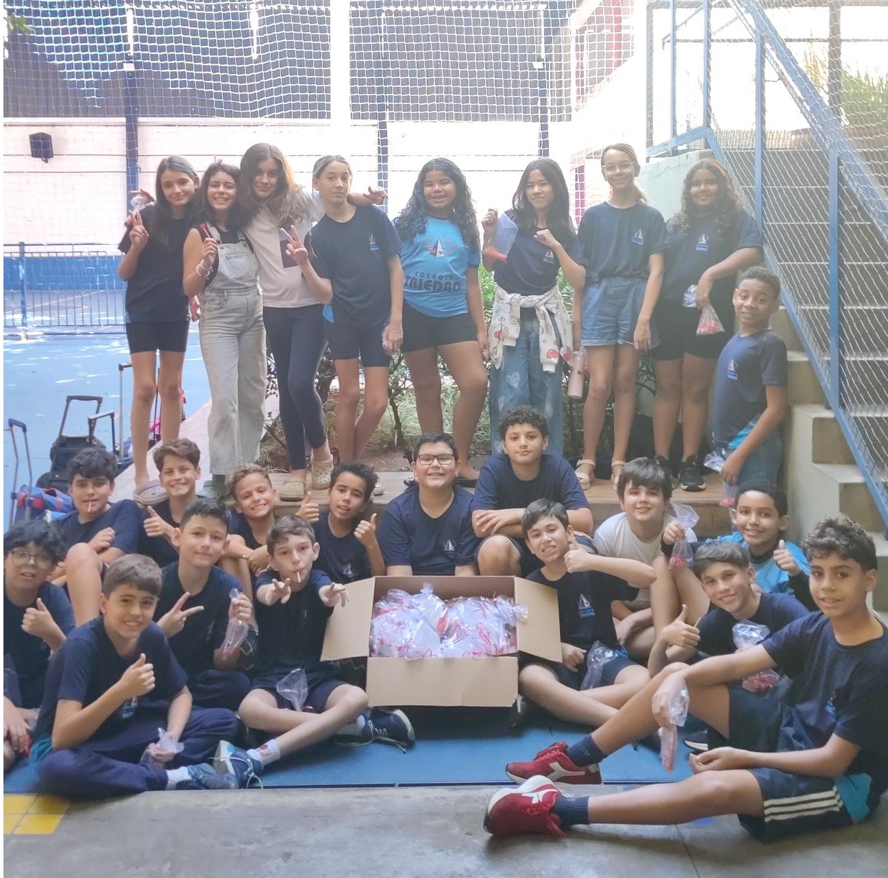 Sexta-feira foi dia do 6° Ano organizar as lembrancinhas e cartinhas que serão enviadas para as crianças do Rio Grande do Sul.